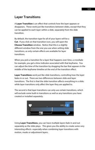 Layer Transitions work just like slide transitions, controlling how the layer